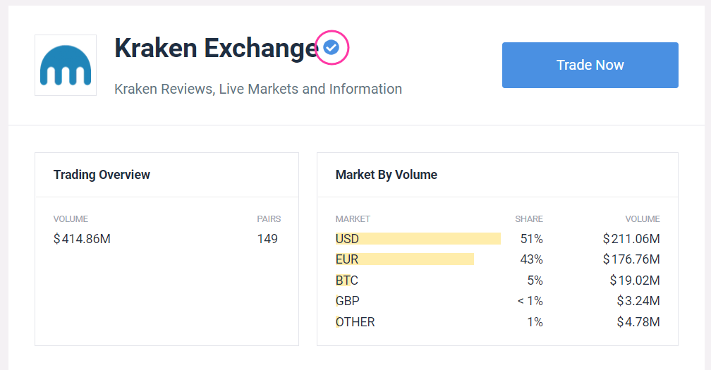 You can identify a Trusted Exchange by the blue tick next to the exchange’s name.